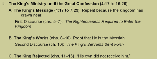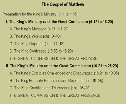My explanatory outline of Matthew is designed to give a look at the book as a whole. You will read that outline before lesson 1 — and parts of it at various stages.